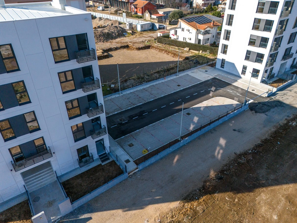 Projekat obuhvata numerisana parking mjesta, osigurana rampom kojoj imaju pristup samo stanari zgrade.